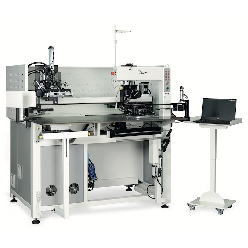 La velocidad de la máquina puede ser aprovechada para producciones grandes, pero también se puede adaptar a producciones pequeñas. Los láseres ayudan al operario a colocar y alinear perfectamente la tela. Un sistema de vacío, junto con cuchillas, la doblará para dejarla lista para la fase de costura.