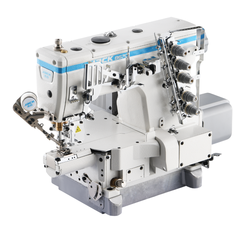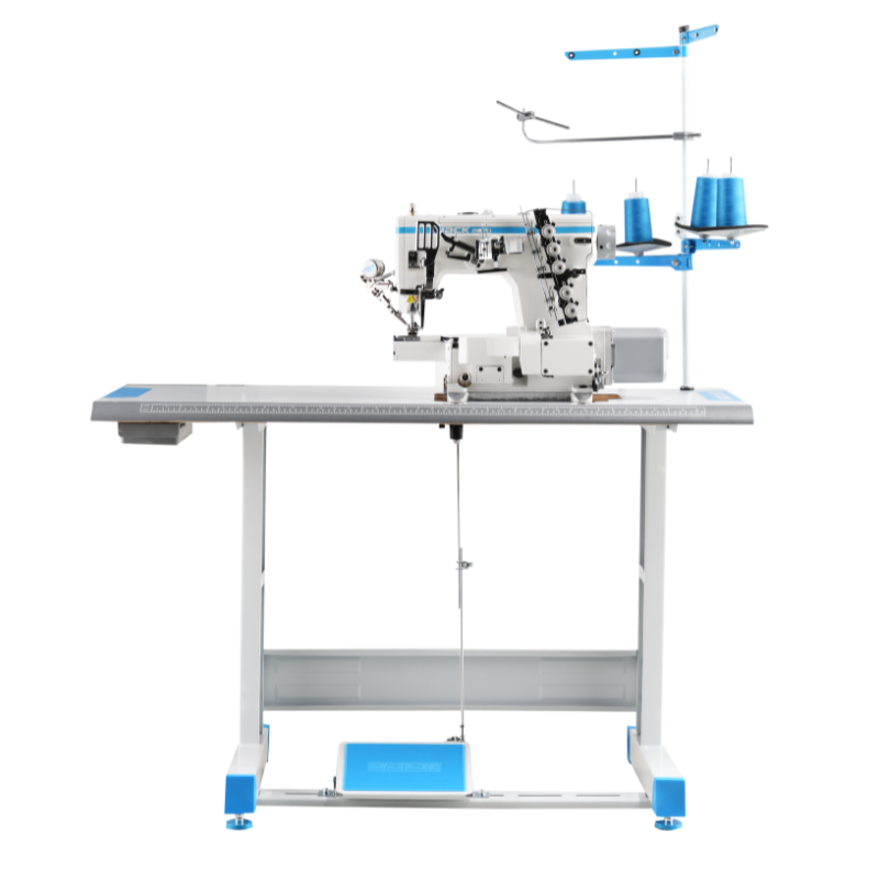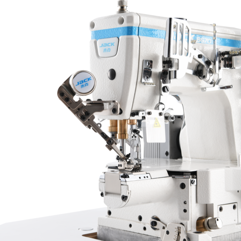 Cortador de hilo arriba y abajo, con un tornillo de ajuste del cuchillo inferior móvil, lo que asegura un rango de corte amplio, menos complicaciones, mayor durabilidad, alta eficiencia y corte 100% preciso. El brazo de perímetro muy pequeño de 180 mm es especialmente adecuado para coser mangas de camisetas para niños.