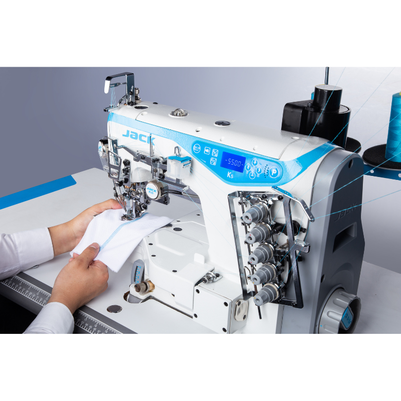 Máquina de interlock de cama cilíndrica computarizada de super alta velocidad. Su diseño robusto y su funcionamiento silencioso hacen que la máquina de coser JACK K5 sea ideal para entornos de trabajo concurridos. Su adaptabilidad a diversos tejidos, desde textiles de alta resistencia hasta materiales delicados, la distingue de otras máquinas.