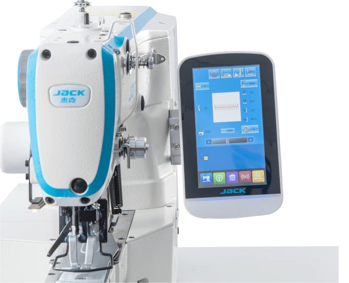 Máquina computarizada multifuncional para coser bartacks y botones, una máquina para 2 tipos de trabajos y una amplia gama de funciones. Panel táctil fácil e intuitivo, que muestra las funciones y los dibujos. Esta versátil máquina JACK T1900G es adecuada para diversas aplicaciones, como cintas elásticas, bolsas de tela, bolsas de compras, velcro y costuras decorativas. Mejora la eficiencia de producción con una capacidad de alta velocidad de hasta 3200 rpm.Esta subclase es una máquina de campo pequeña de 60×50 mm, que permite diseñar el patrón de costura directamente en la máquina o desde un PC. Es adecuada para bandas elásticas, así como para etiquetas, bolsos, zapatos y costuras decorativas.