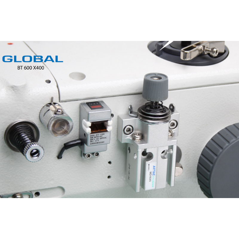 Esta máquina de coser con patrones programables es adecuada para coser materiales medianos / pesados, con un área de costura de 600 x 400 mm. La altura del elevador del prensatelas se puede ajustar mediante un motor paso a paso.
