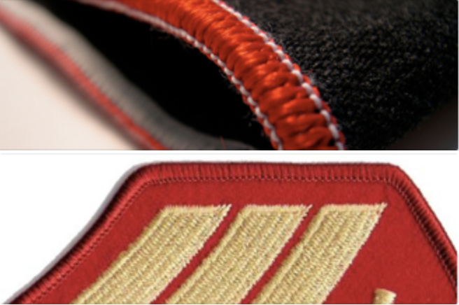 El “Merrow Edge” es el estándar de referencia para el ribeteado de emblemas pequeños, insignias y distintivos. Se distingue por su acabado y regularidad.
