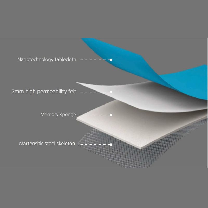 Cuatro capas de soporte para un producto de alta calidad. Mantiene la mesa siempre seca sin generar condensación en la cubierta.