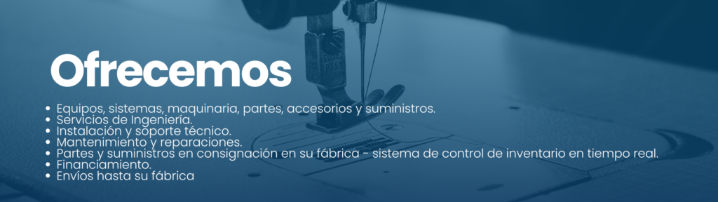 Representamos a las marcas líderes para las industrias de confección de vestuario, zapatos, accesorios, tapicería, y litografía, asegurando que cada equipo, maquinaria, producto o sistema que distribuimos cumpla con los más altos estándares de rendimiento y durabilidad.
